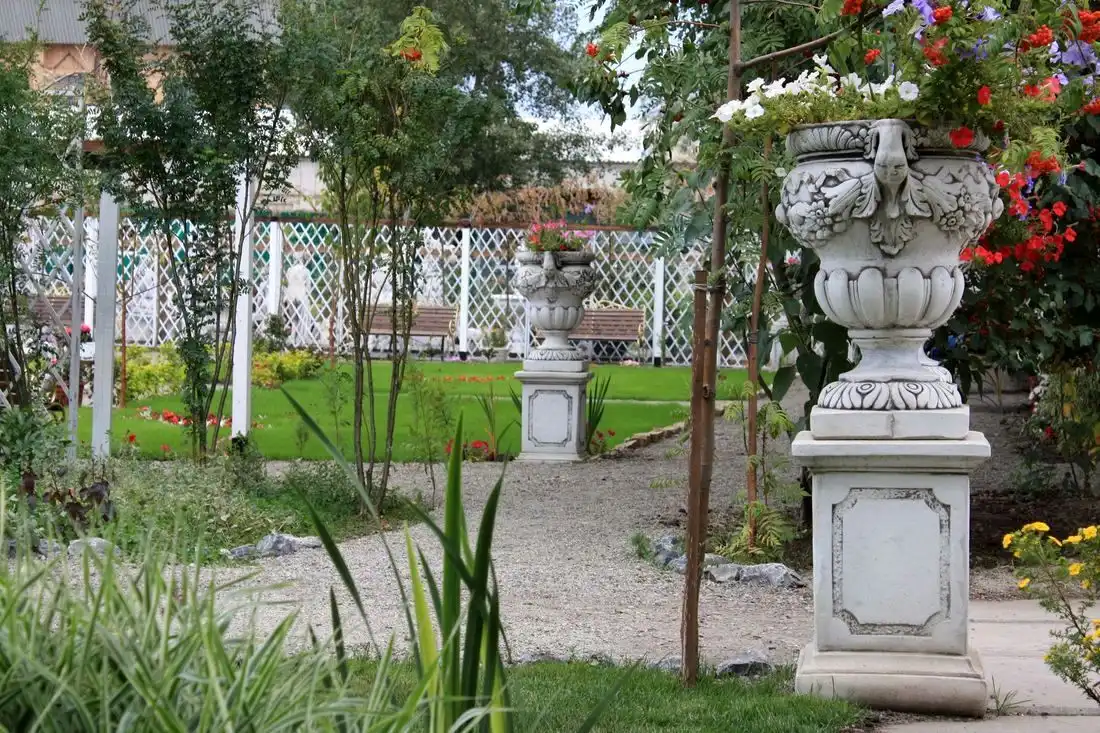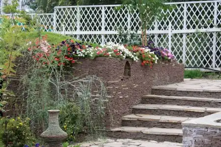 везде всякие горки, посажены декоративные растения, цветы, кустарники и т.д.