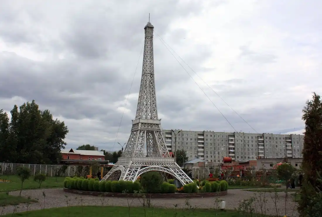 точная копия Парижской только деревянная, вечером подстветку включают, народный умелец сделавший это чудо, уже несколько лет как оформляет дворцы на рублевке, свалил туда декоратором. По слухам конечно...