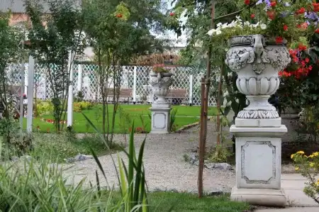 вот экспозиция восточного стиля, разделяются между собой они обычно растительной или плетенной оградкой