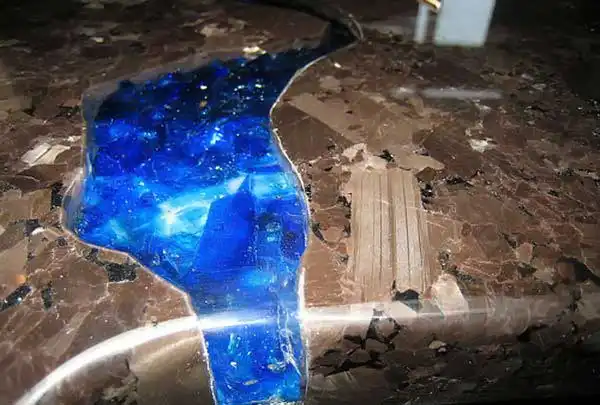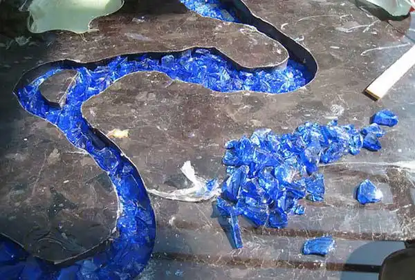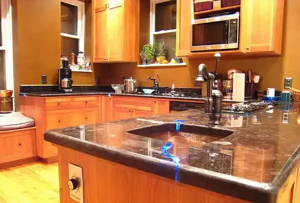 гранитная столешница, цветное стекло, оптический кабель, прозрачный застывающий пластик и умелые руки.