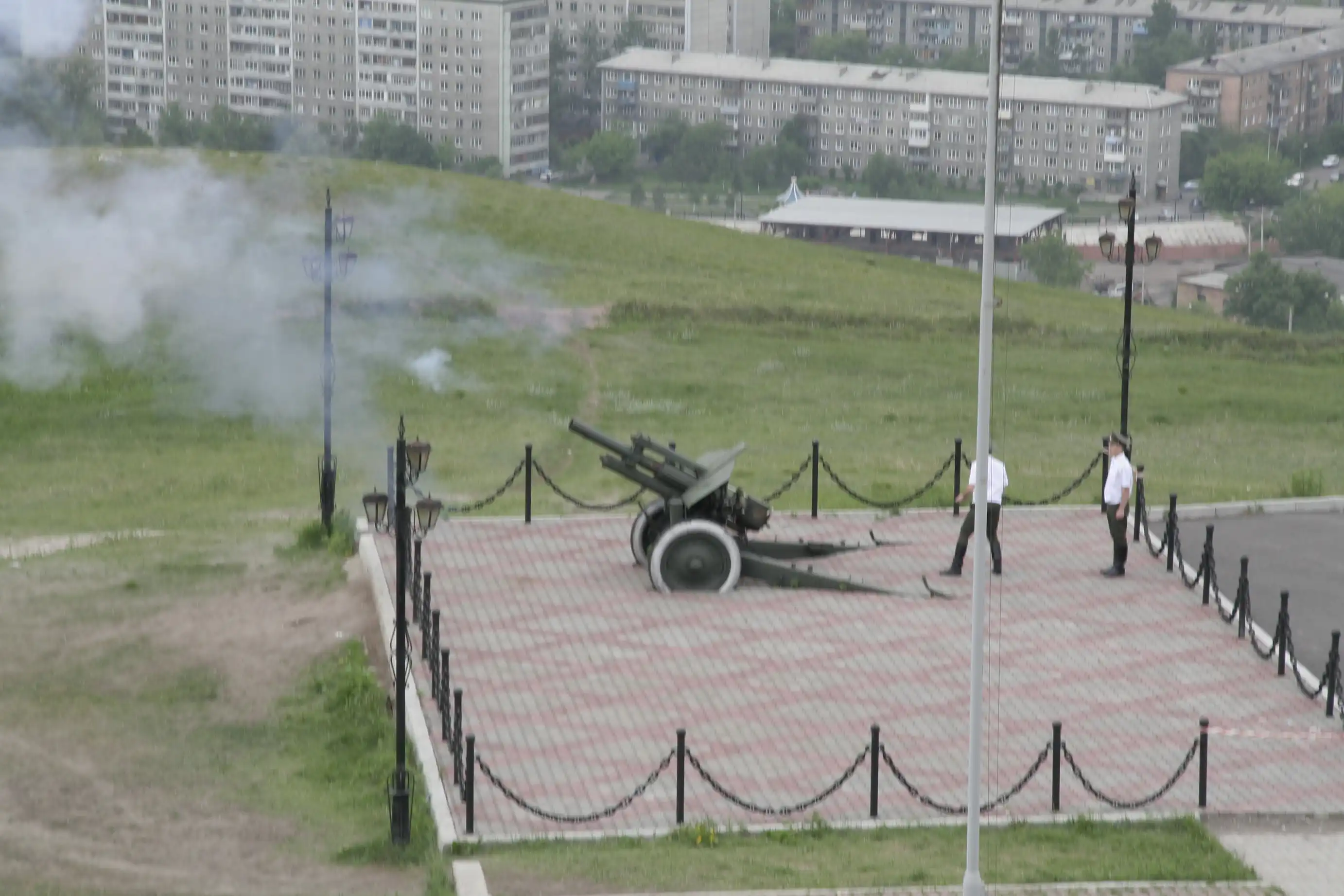 Каждый день ровно в 12 часов дня каждый житель города слышит раскаты пушечных выстрелов. Это стреляет пушка на Караульной горе. Гаубицу М-30 образца 38 года привезли из войсковой части, расположенной в поселке Таскино.