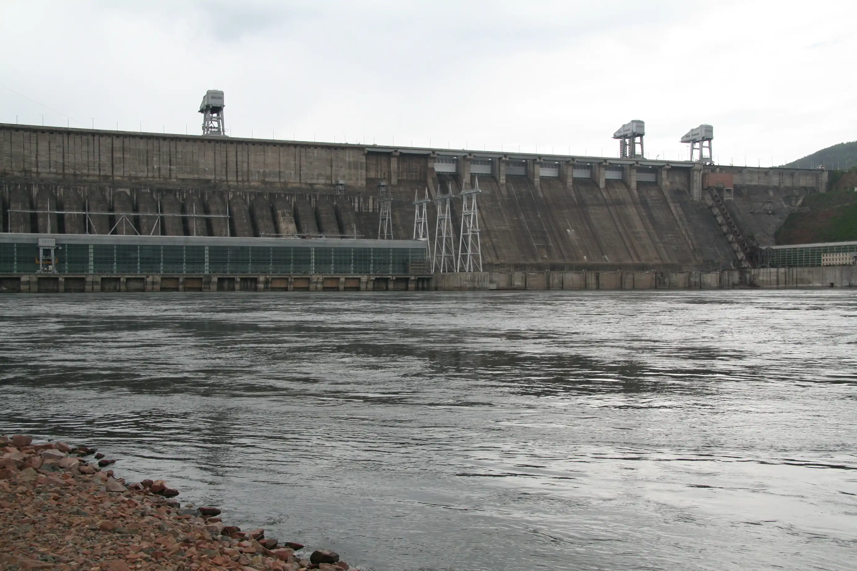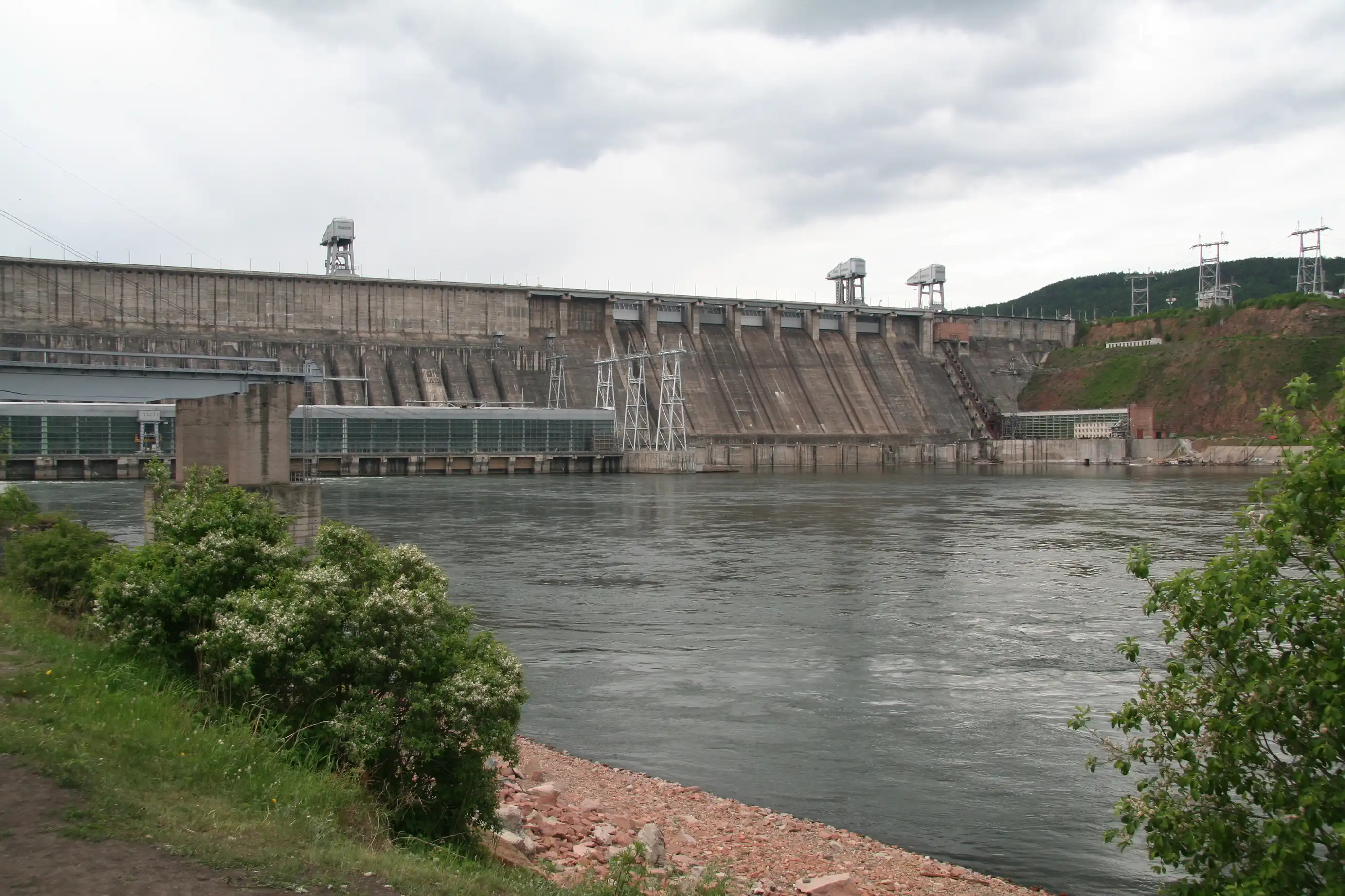 Красноярская ГЭС: Бетонная плотина высотой 124 м и длиной 1065 м