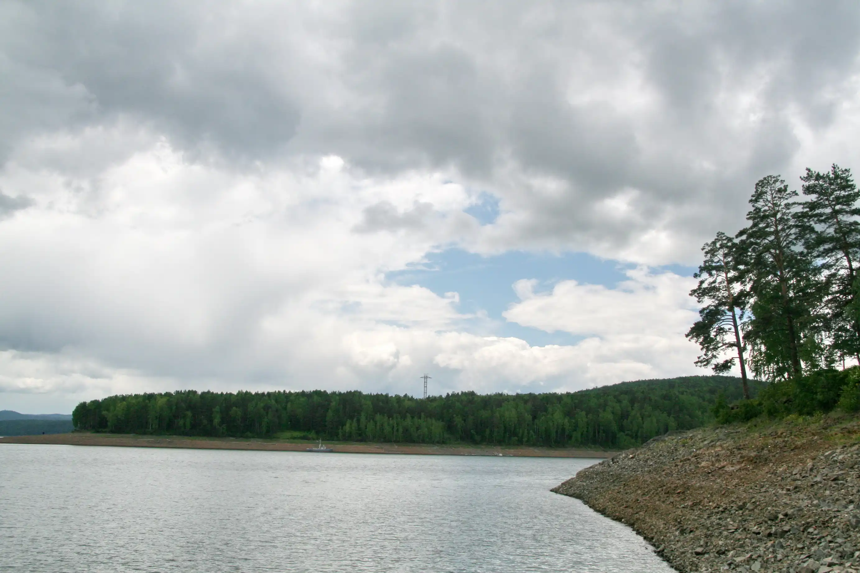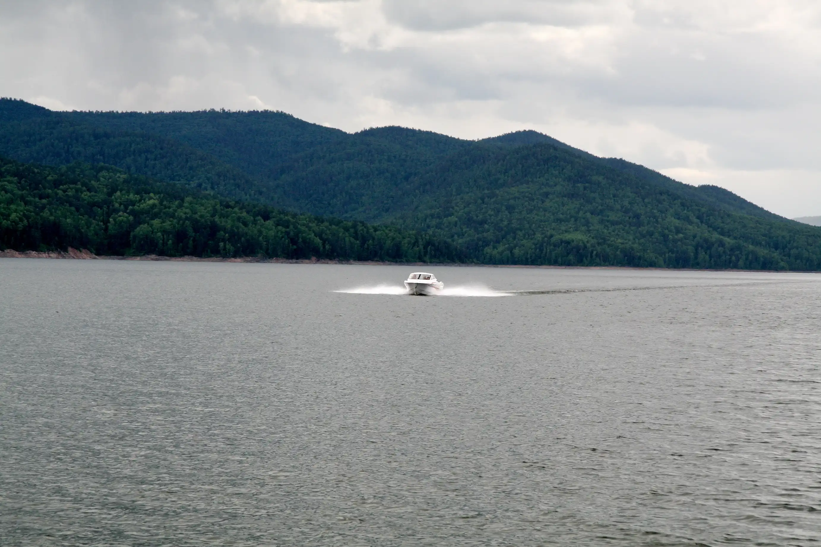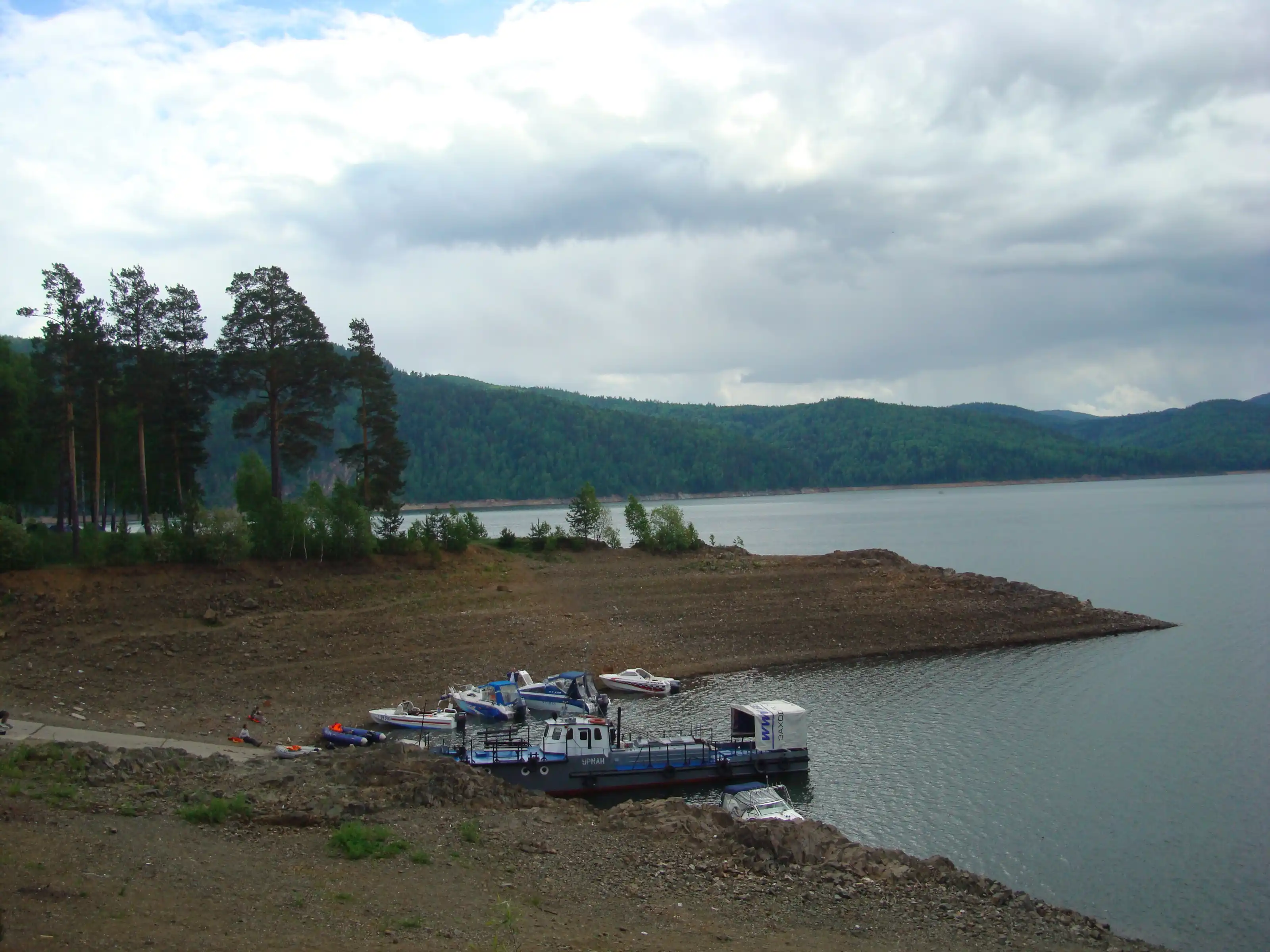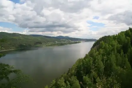 Водохранилище Красноярской ГЭС - длина около 400 км, ширина до 15 км, глубина до 100 м. Самое большое водохранилище пресной воды - Красноярское море. Искусственный водоем раскинулся на 400 км от г Дивногорска до столицы республики Хакасия Абакана.