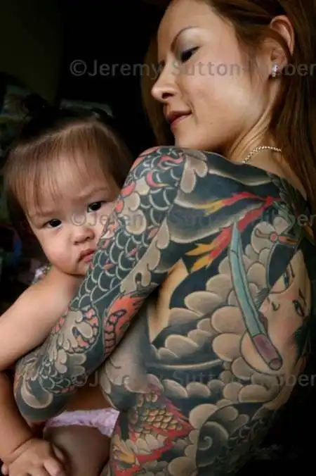 Такое чувство, что "голой" её быть не суждено! Кто не понял, татушек много.