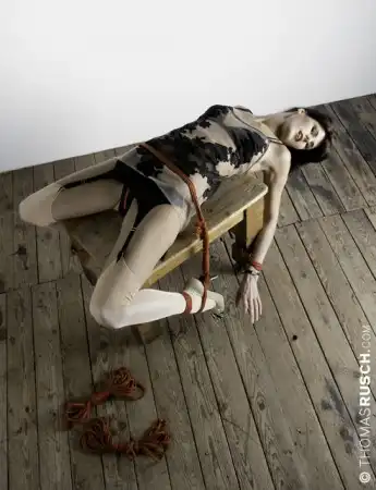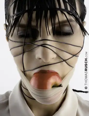 это больше извращение, чем гламур. Где видано чтобы "гламурно" пихали яблоко в рот и обматывали проводами??или к столбу/столу привязывали?
