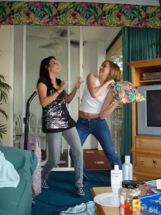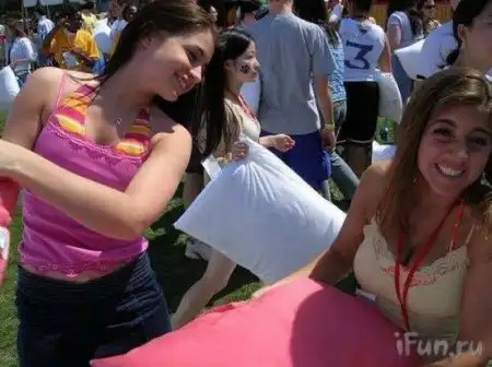 Девчачьи битвы подушками. Бессмысленно, но очень сексуально.