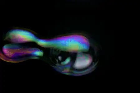 кстати перед тем как лопнуть м.пузырь меняет радужную расцветку на бесцветную как бы рыхлую. Замечено еще в детстве. Рождение, старение и хлоп...