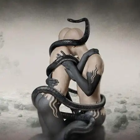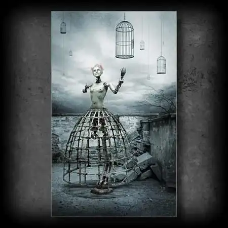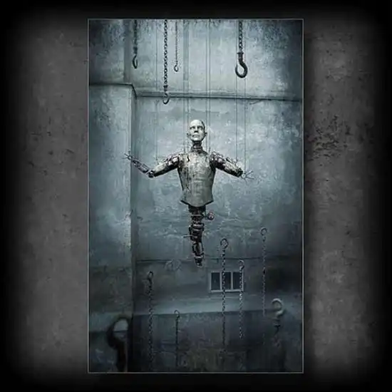 "Работа над Gezeitn стала для меня большим вызовом - никогда раньше я не пробовал совмещать фотографии кукол и людей. У меня большая коллекция кукол, и я сделал много фотографий их глаз и волос. Получилось, что некоторые элементы были нарисованы, некоторые сфотографированы, а некоторые смоделированы на компьютере. Над последним я провел много времени, стараясь добиться того, чтобы они выглядели "живыми". У каждого элемента своя история создания. Например грязь на картинке, где человеческие куклы лежат на земле, на самом деле является кофейным порошком вперемешку с веточками, которые я нашел во дворе своего дома. Волосы куклы я взял у Барби, только разработал новый дизайн прически. Дырку в голове одной из кукол я сделал, воспользовавшись яичной скорлупой, а позвоночник позаимствовал у анатомического скелета, и так далее..."