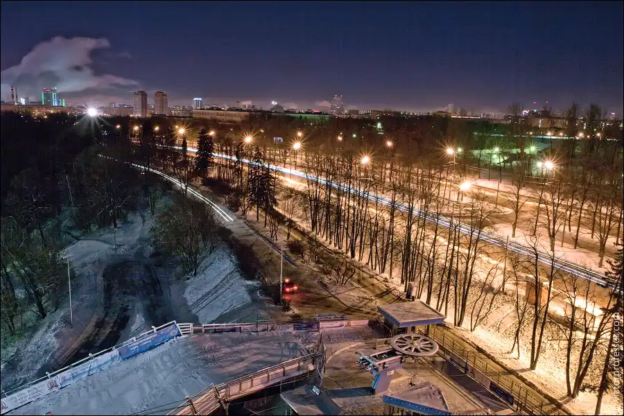 Смотровая, или "смотрячок" на байкерском сленге. Сейчас, одно из самых тусовочных мест города. Здесь собираются стрирейсеры и мотобайкеры в огромнейших количествах. Дата фотографии предположительно 68-72 год. Вдали виднеются дома на мосфильмовской улице, а вниз идет одна единственная дорожка с освещением. Деревья еще совсем маленькие. Посередине стоит стелла, про которую никто ничего не слышал.