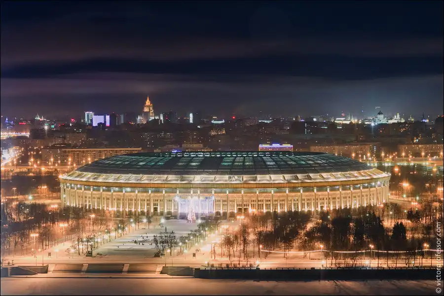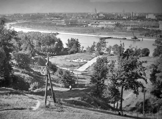 Лужники, вид с Воробьевых гор. Как мало было тогда растительности.