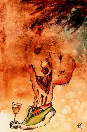 Можно много рассуждать над нетривиальным видинием мира художником и тем, что по-ходу он ничего не курил, потому что помочь ему уже нечем)) Но.. отмечу что, прикольно изображён Атронах, непривычно видеть его в женском образе, и ещё зацепил Грипп, недавно переболел им в тяжёлой форме, чувствовал себя как на картинке точь-в-точь))