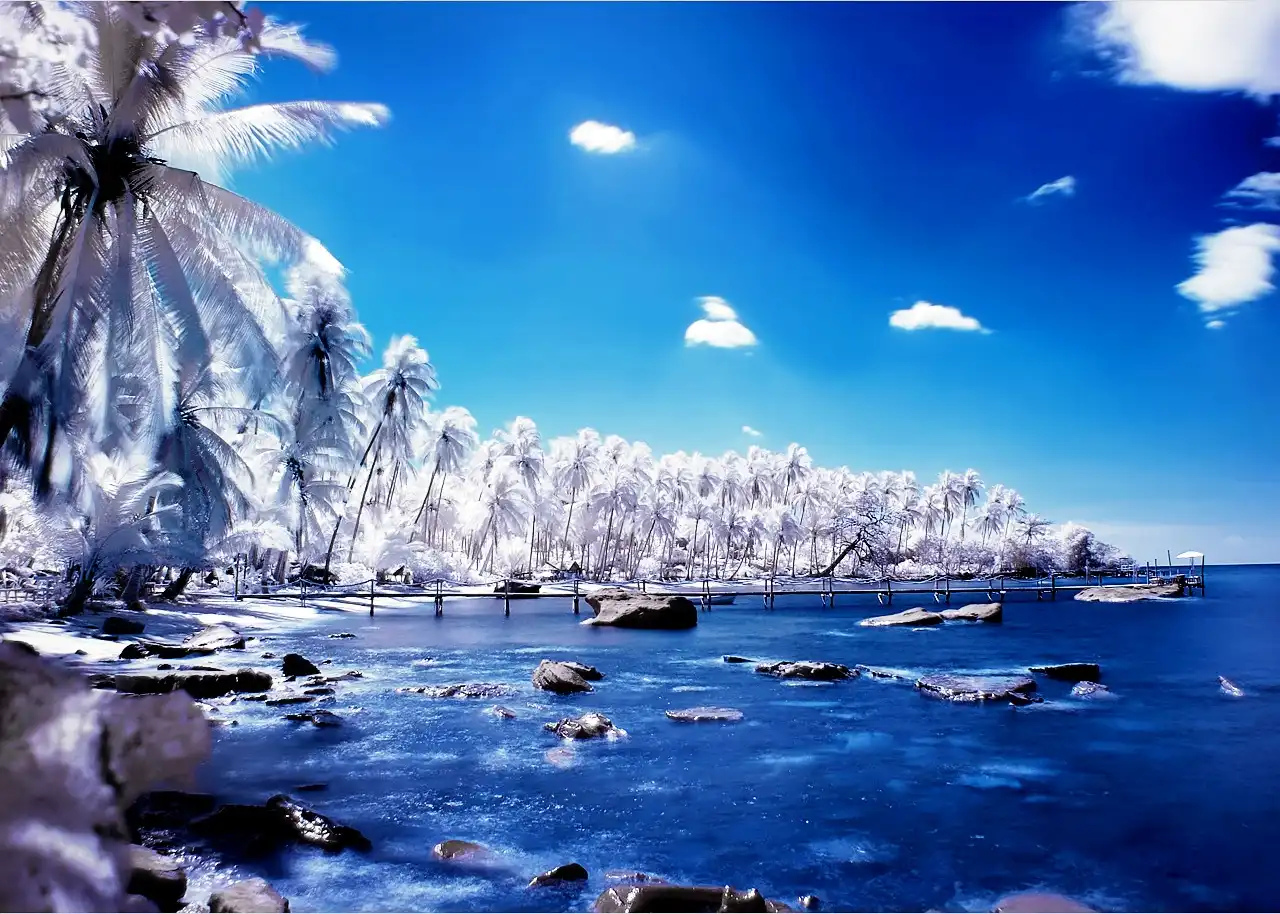 Ну на сколько я поняла это инфракрасная фотография а не фотошоп. Хотя возможно я ошибаюсь, человеку это свойственно.