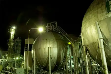 при съемке ночью все выглядит ярче, интереснее. стоят колонны ректификации, емкости с сжиженым продуктом-думаю что то сродни нашего ТНХК