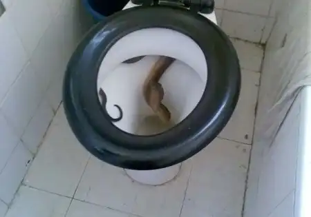 Слышала историю - у мужика змея была, он уходил куда то и (идиот) решил змею в ванной комнате закрыть, типо шоб не уползла. А эта гадина в унитазе нашла спасение. В тот момент, когда соседка то ли снизу то ли сверху сидела на своем унитазе, вдруг неожиданно почувствовала что холодное и скользкое в определенном месте, ну вы поняли, от испуга она в чем была вылетела из толчка выбив дверь!!! Че дальше было не помню, но мужичек попал