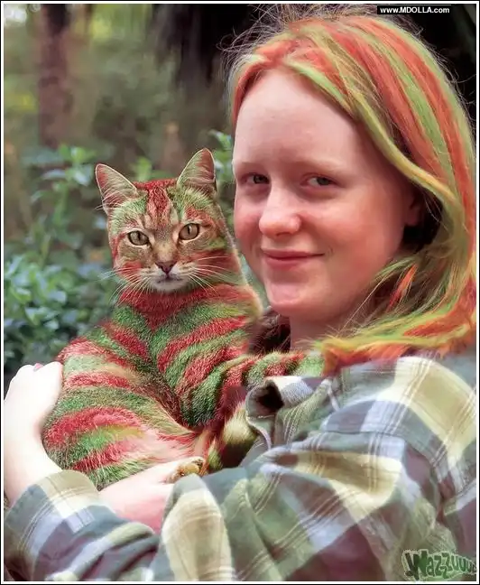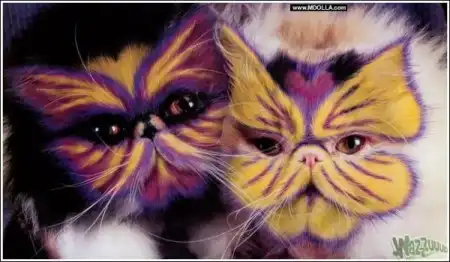 Америкосы выдумали..:) Покрасить уошку такими красками(чтоб не вредно было для животного) стОит примерно 15000 вечнозеленых..:) Дык ещё надо каждые 2 месяца..перекрашивать...