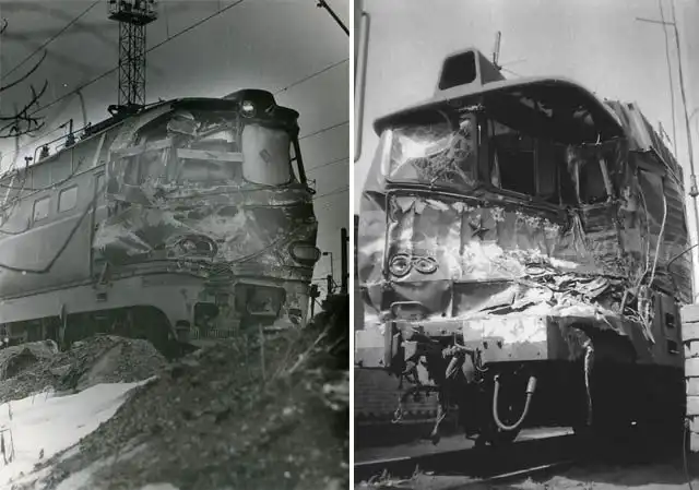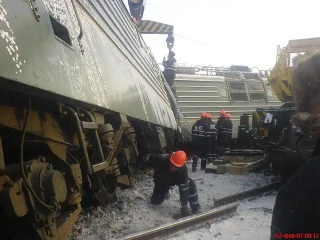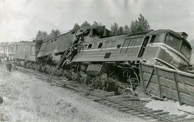 Со сплющенной цистерной - это не крушение. Я такое сам видел: в депо цистерну помыли изнутри паром, задраили и на ночь выгнали на улицу. А там мороз под 30 ! Сапуны замерзли и её сжало как пластиковую бутылку!