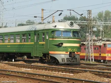 Пригородный электропоезд переменного тока. Модификация электропоезда ЭР9 с подвагонным расположением выпрямительной установки.