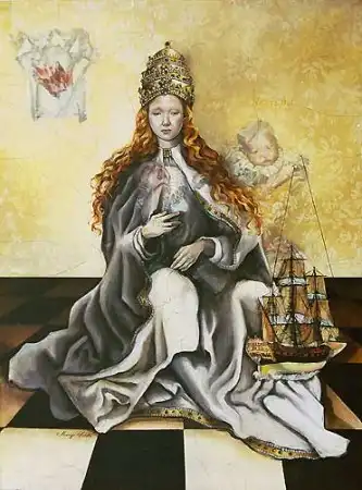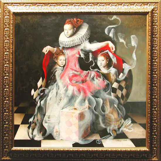 Красиво и немного искажённо))Многие лица похожи на Английскую королеву Елизавету II.