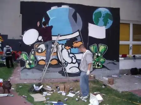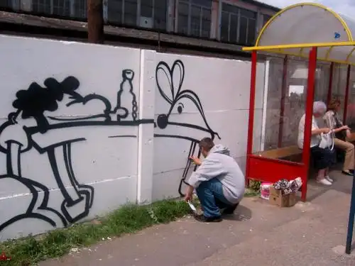 в Северске прикольные трафоретные рисуночки есть, но и много конечно всяких уродских надписей ; (