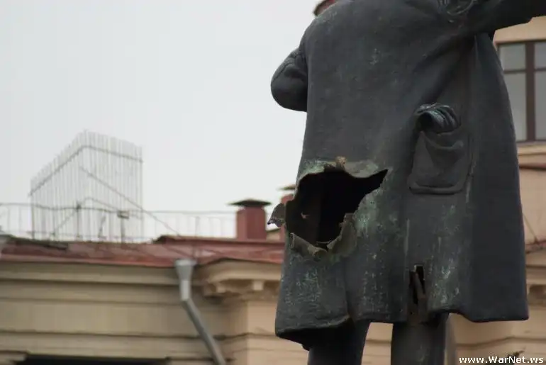 Памятник Ленину на площади перед Финляндским вокзалом поврежден в результате взрыва.