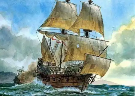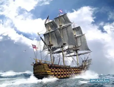 4 с верху Ман-О-Вар гроза морей 17 века, 102 пушки и чутли не 1250 человек экипажу умещается.
