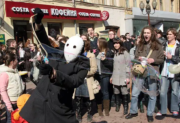 12 апреля 2009 года несколько тысяч человек пришли на Арбат, чтобы пройти по Арбату, выдувая пузыри.