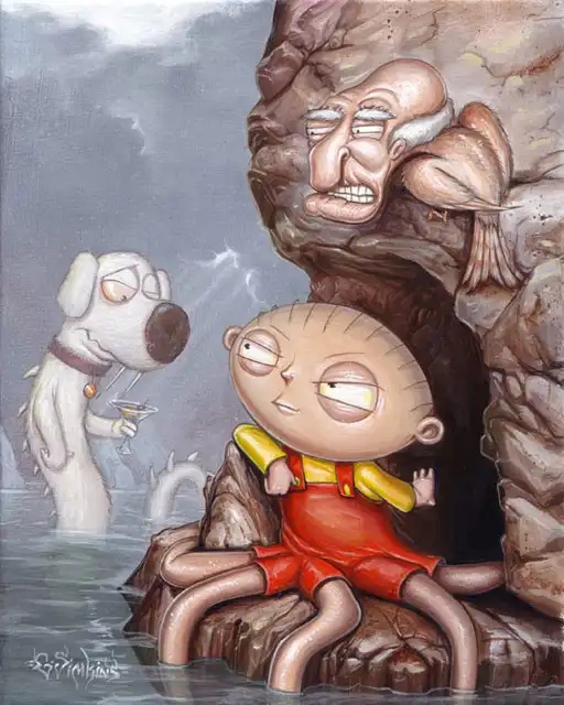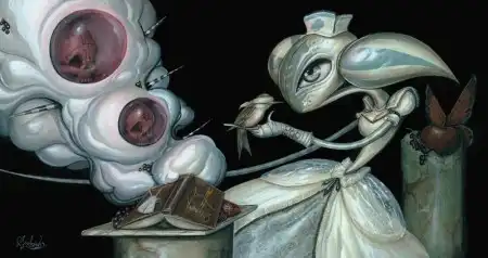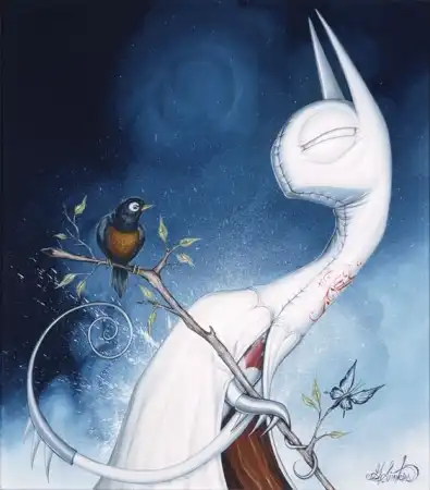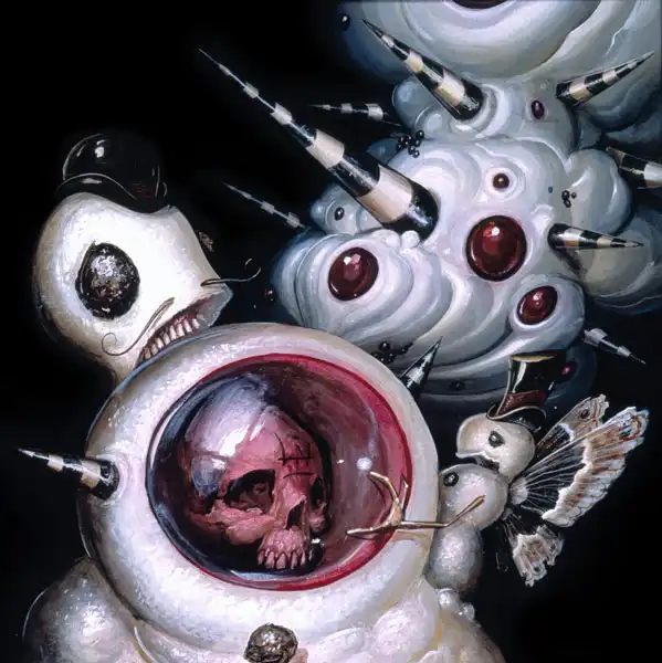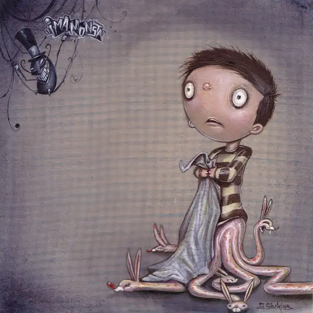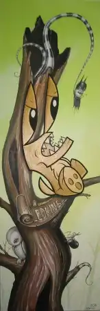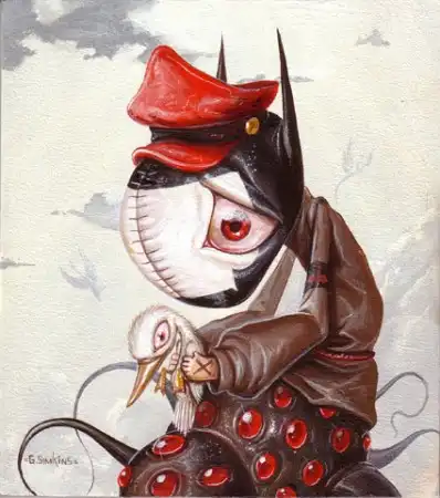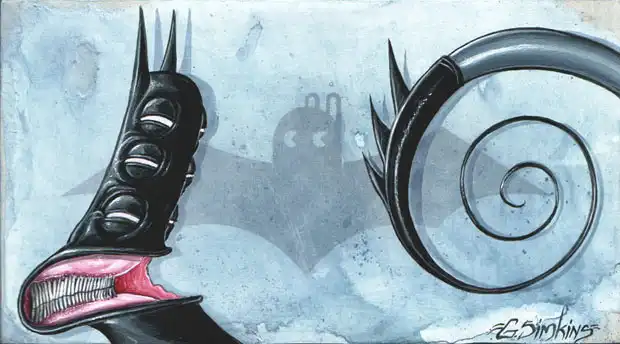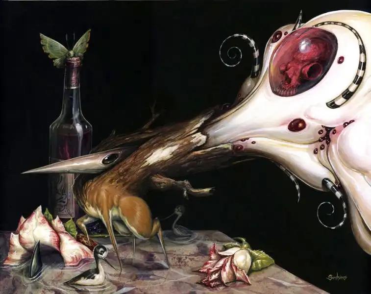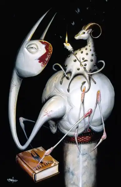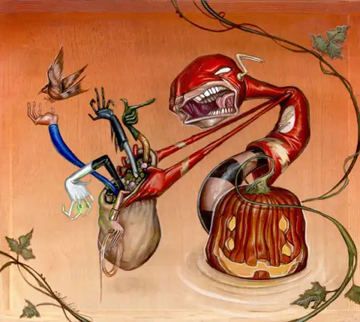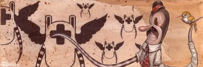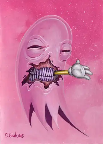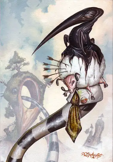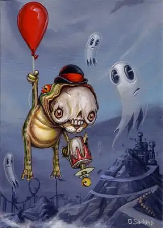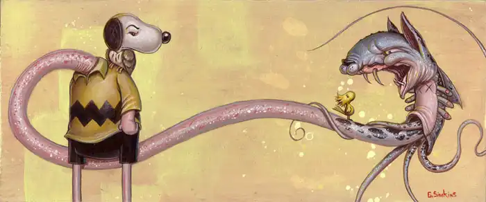 После долгих лет преследований монстров под кроватью Грэг Симкинс явился в обычный мир, принеся с собой изображения того, что он видел в тех забытых снах. Симкинс не всегда использовал кисть, чтобы показать нагромождение характеров.