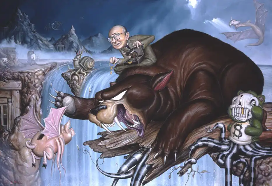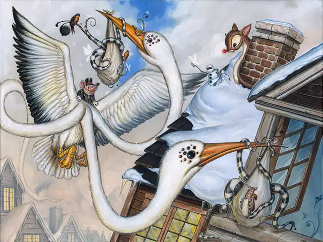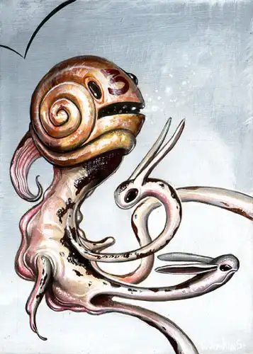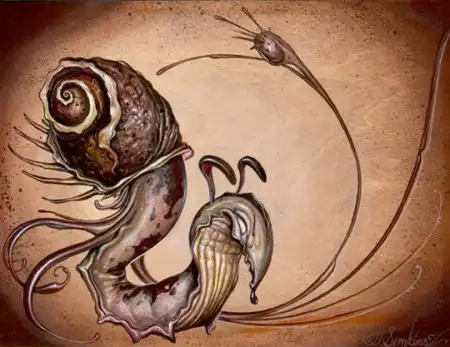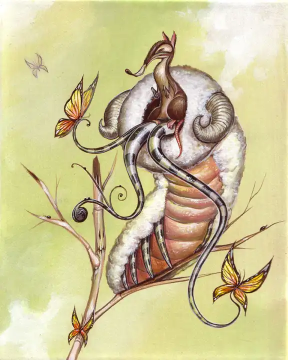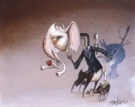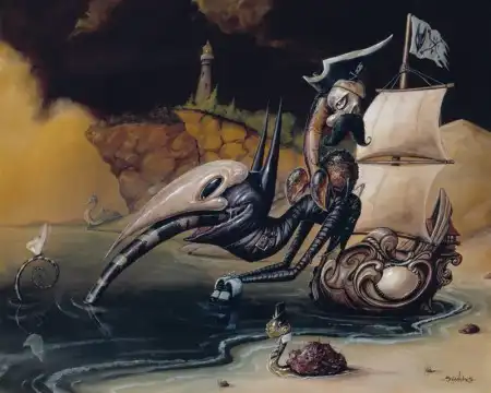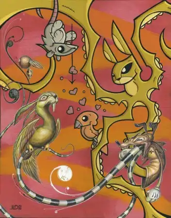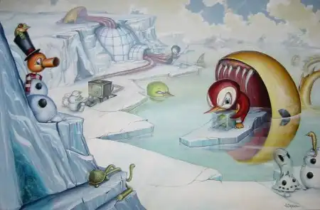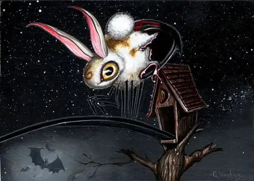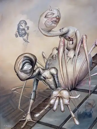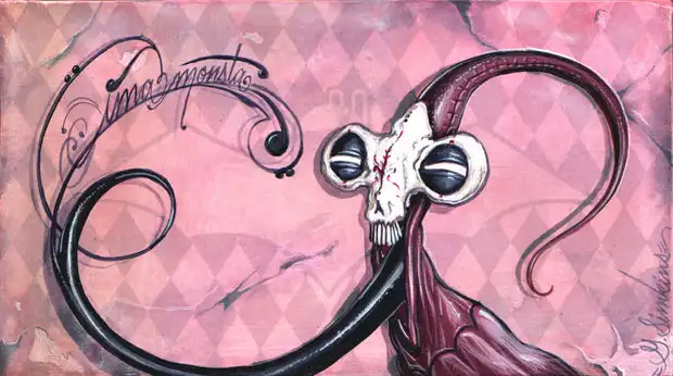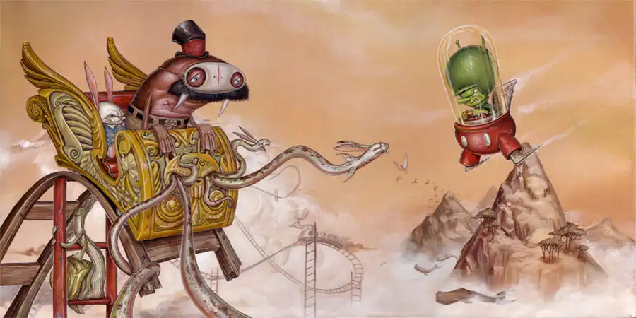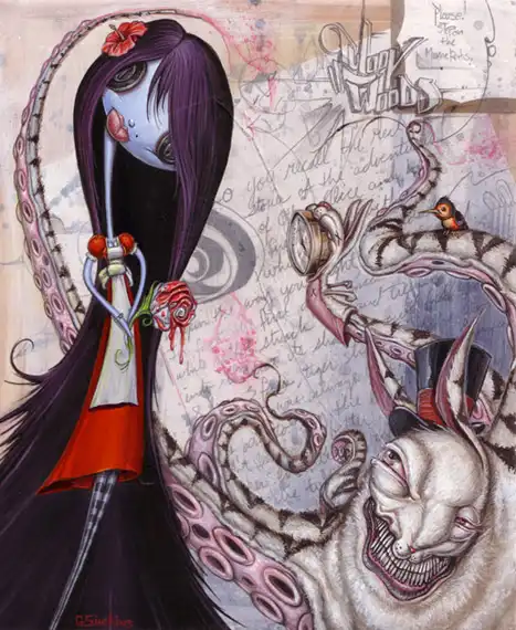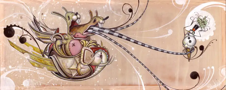 После долгих лет преследований монстров под кроватью Грэг Симкинс явился в обычный мир, принеся с собой изображения того, что он видел в тех забытых снах. Симкинс не всегда использовал кисть, чтобы показать нагромождение характеров.