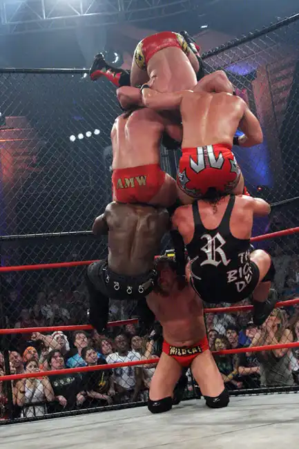 Рестлинг надо смотреть не как мордобой, а как шоу, акробатическое шоу. Например толстяка Бам Бама над головой поднять- надо немного силой обладать.))