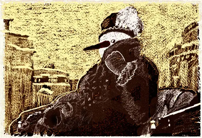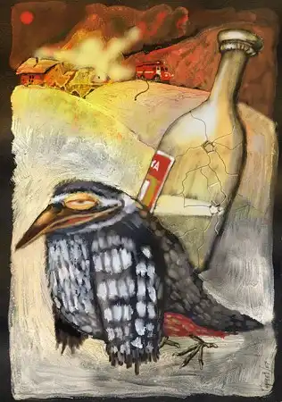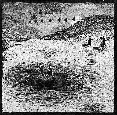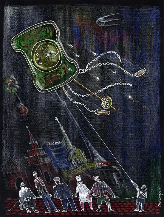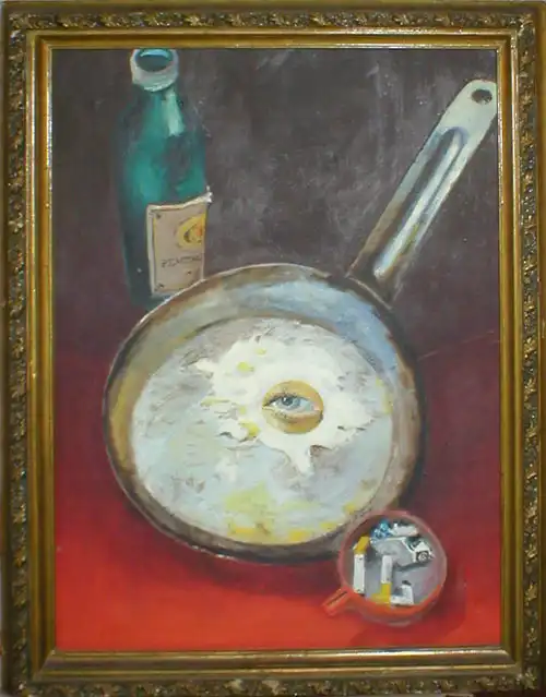 кажется, что рисовал под впечатлением от книги!(книги -неопрятно склеенной из страниц о ВОВ, Млекопитающих, из детских сказок, Искусство любви и брошюр о наркомании и т. п.) ..)