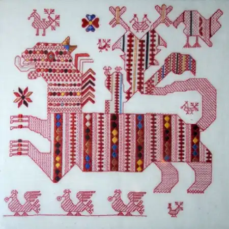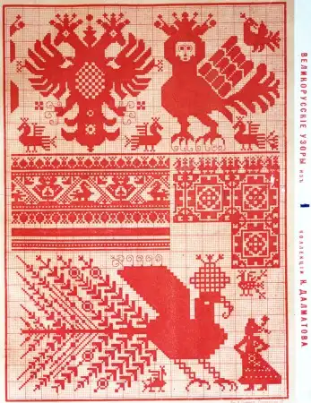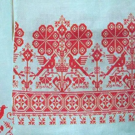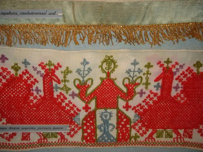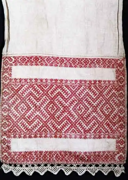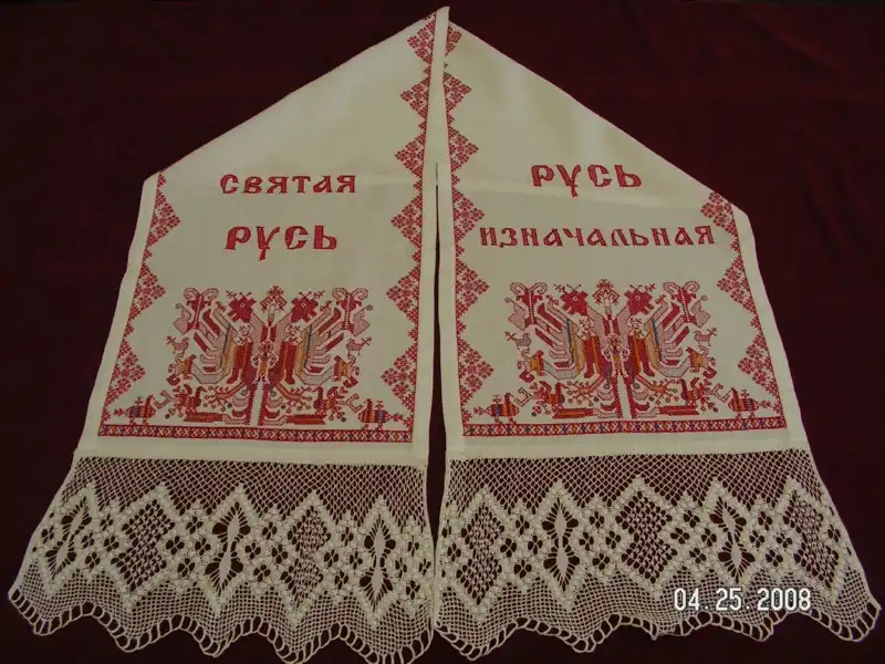 Рушники, покрывала, шарфы, накидки и прочие тканевые предметы издревле носили обереговый характер. Сменив веру языческую на веру христианскую, народ не забыл древних орнаментов и вышивал их на ткани. Образы Мокоши и берегинь-рожаниц, оленцов и охотников, а также солярные символы и символы плодородия дополнились христианскими и державными мотивами: райские птицы, двухглавый орел и т.д.