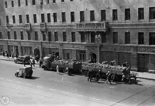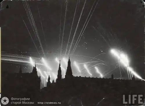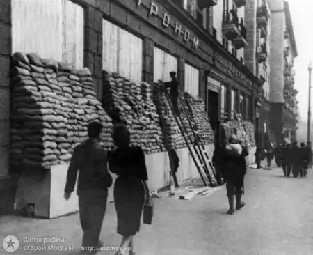 К этому времени Москва уже не раз подвергалась бомбардировкам немецких люфтваффе. Окна домов крест накрест заклеены бумажными лентами, а зеркальные витрины магазинов полностью заложены мешками с землей и песком.