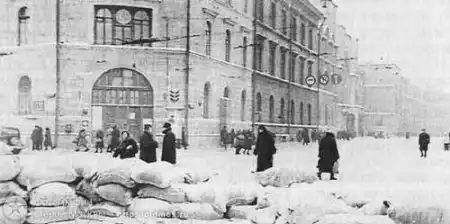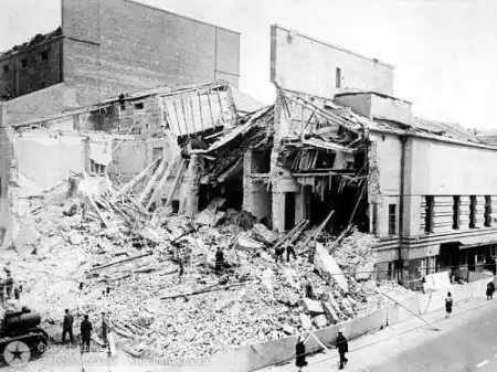 Улица Кирова. Телеграф после попадания фугасной бомбы во время одного из налётов немецкой авиации.