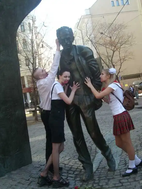 Это ,однозначно, Москва!!! На старом Арбате есть памятник Булату Шавловичу Окуджаве.Это он и есть...А флэш-моб не интересный.