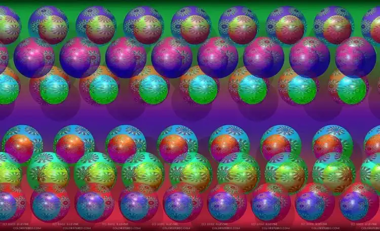 Вижу 3D, но не всегда могу понять что нарисовано. Объем вогнут вовнутрь (за экран) потому как фокусируюсь на точке до экрана.