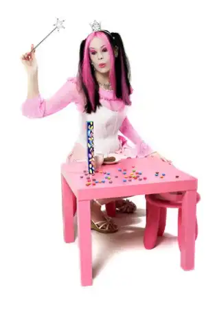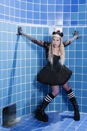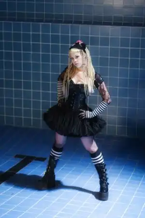 просто я подумала, что наверно неуютно ей среди черно-сине-красных дэвушек в блестящих латексных трусах и готишных платьях XD