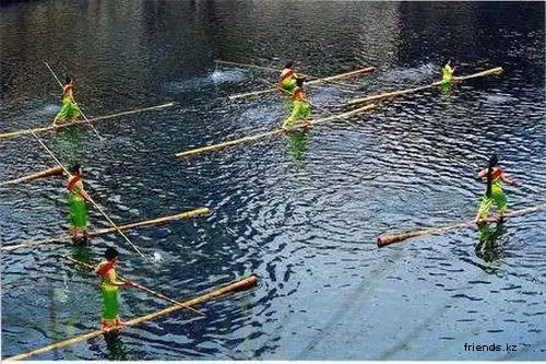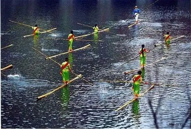 Жители деревни из Чишуй, рядом с г.Зую организовали удивительное шоу на воде.Люди балансировали на бамбуке по реке Пинжу.