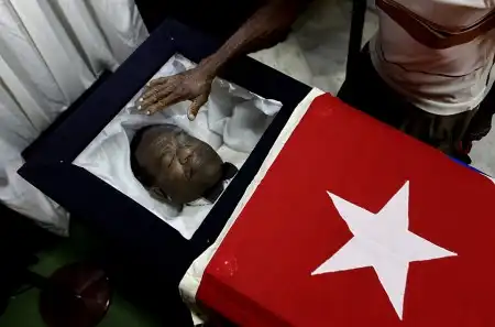Люди почтили память музыканта Ricardo Abreu, известному как "Papin", во время его похорон в Гаване в среду. Он умер во вторник в возрасте 75 лет.