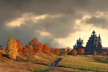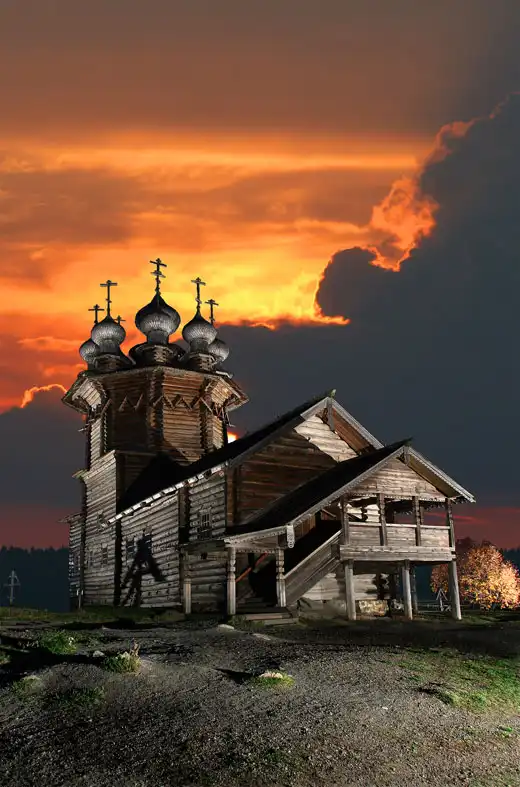 Музей-заповедник "Кижи" собрал под открытым небом 89 памятников традиционной деревянной архитектуры: старинные часовни и дома, мельницы и амбары, риги и вешала... Жемчужина собрания – 22-х главая Преображенская церковь высотой 37 метров. Рядом с ней, подчеркивая ее величие и гармонию, возведены зимняя церковь Покрова Богородицы и колокольня.