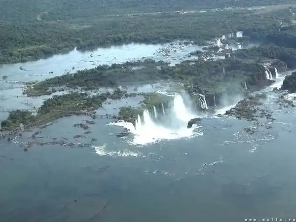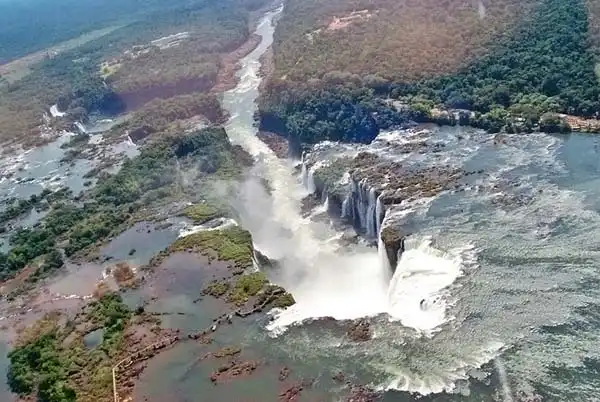 «Глотка Дьявола» — так называется самый крупный из 270 водопадов реки Игуасу на границе Бразилии и Аргентины. Индейцы говорят, что Игуасу — творение разгневанного бога Мбоя. Он пришел в ярость, когда узнал, что его невеста бежала с простым смертным. Пытаясь скрыться, беглецы сели в лодку и стали спускаться вниз по Игуасу. Погнавшись за ними, Мбоя обрушил дно реки, отчего и получилось столько провалов с падающей вниз водой. Влюбленные упали вниз с огромной высоты. По легенде, девушка превратилась в скалу, а ее возлюбленный — в пальму на берегу.