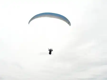 в четвертых, мы то тебя прокатим с твоим парашютом, то тебе придётся ооооооочень быстро и долго бежать по полю ) и ты так и не взлетишь ) лучше параплан себе купи )
