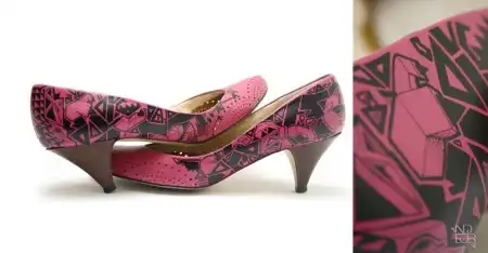 Mattieau Missiaen — молодой французский художник, граффитчик 25-ти лет сделал из женских туфель объект вожделения. Эти лодочки придутся по вкусу всем неравнодушным к настенной живописи девочкам и их мальчикам, которые тоже рисуют граффити, ну, и просто тем, кто обладает чувством прекрасного.