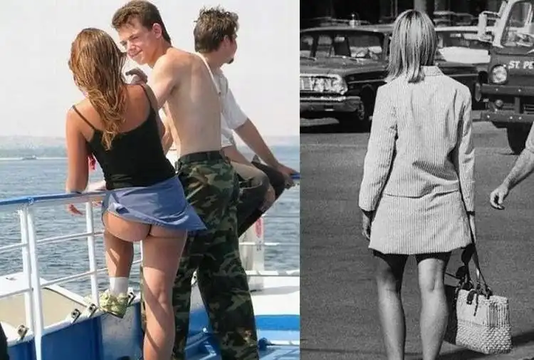 По моему, когда из под юбки видно трусы - это так не эстетично... такая девушка совсем себя не ценит. Можно выглядеть королевой и в более приличной одежде.