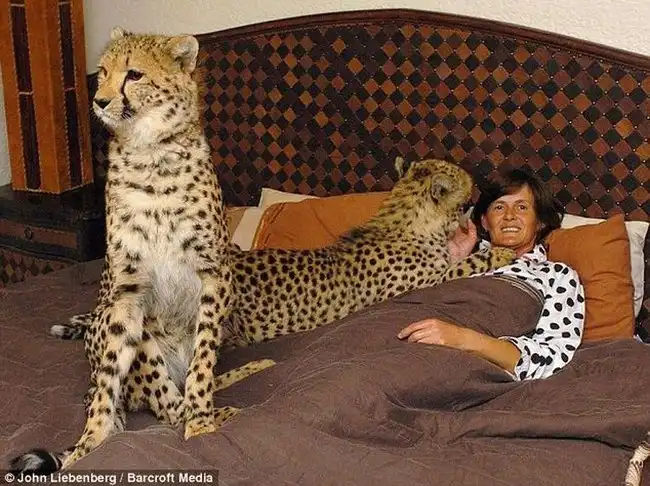 Эта женщина, Riana Van Nieuwenhuizen, живет в одном доме с двумя гепардами, пятью львами и двумя тиграми.Нехило, да? Тоже хочу себе таких домашних кошек))
