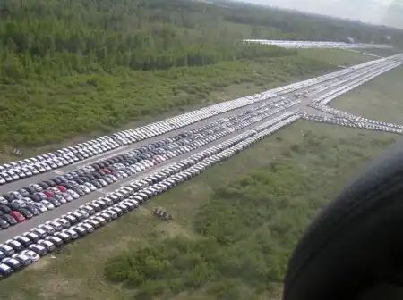 На этом фото вы можете увидеть, как пару лет назад выглядел аэропорт Ржевка, находящийся недалеко от Питера.Теперь он забит ожидающими своей участи нераспроданными авто...
