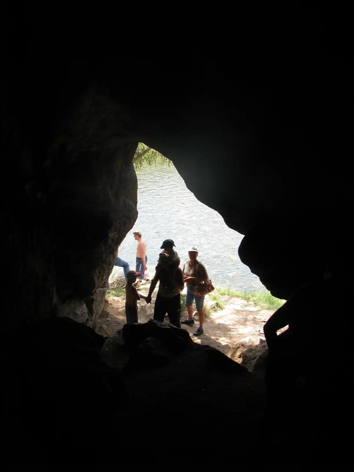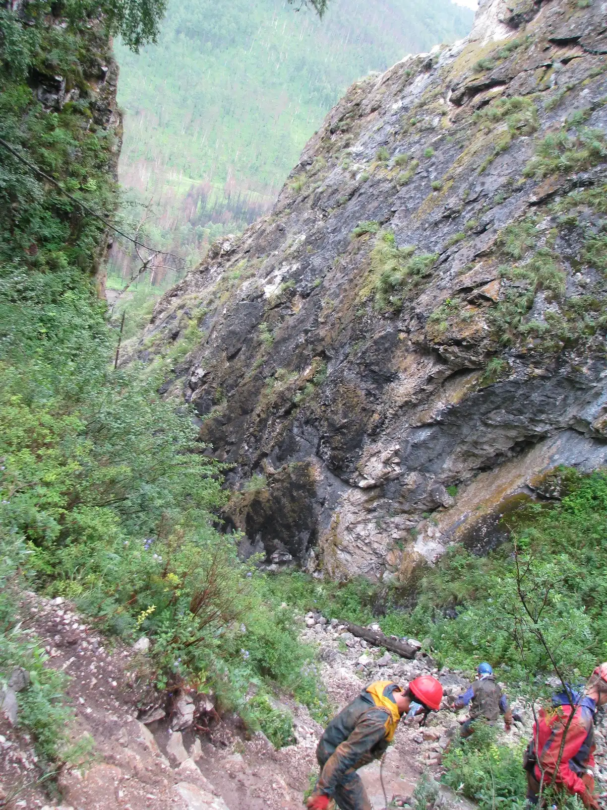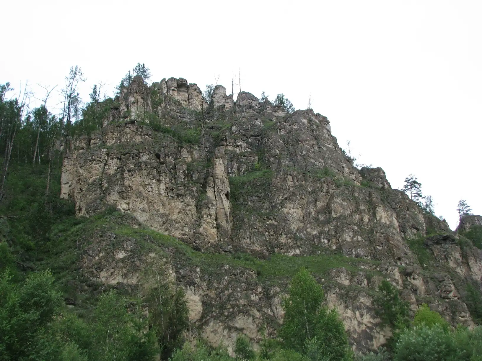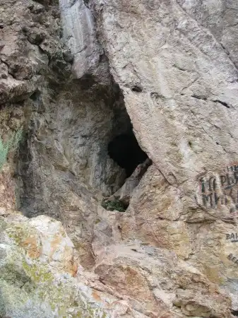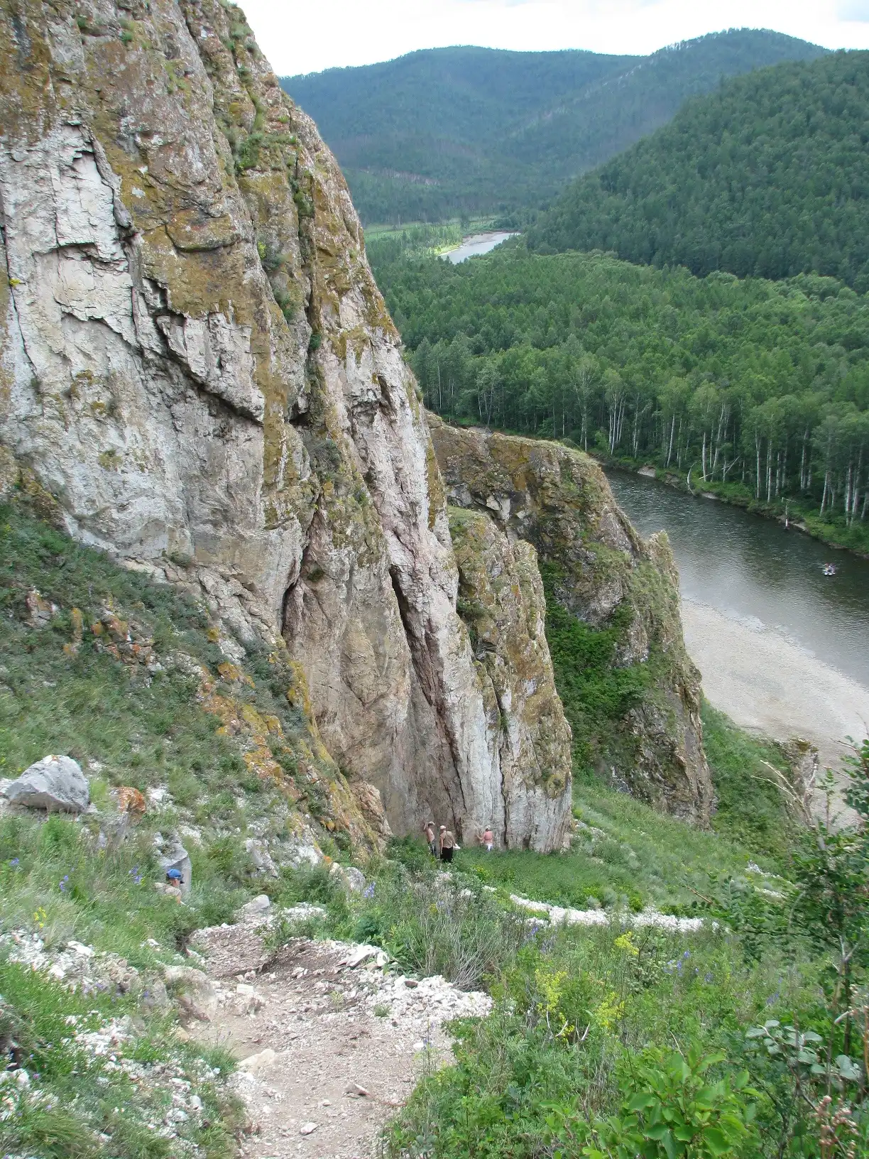 А тут с реки виден конец "Тропы шаманов". Грот наверху с треугольным входом.
