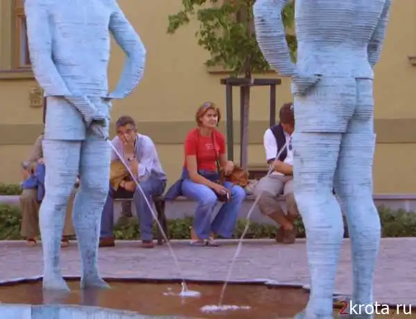 два писающих чувака стоят в Праге возле музея Кавки. они еще двигаются из стороны в сторону и "поливают" карту Чехии