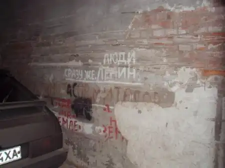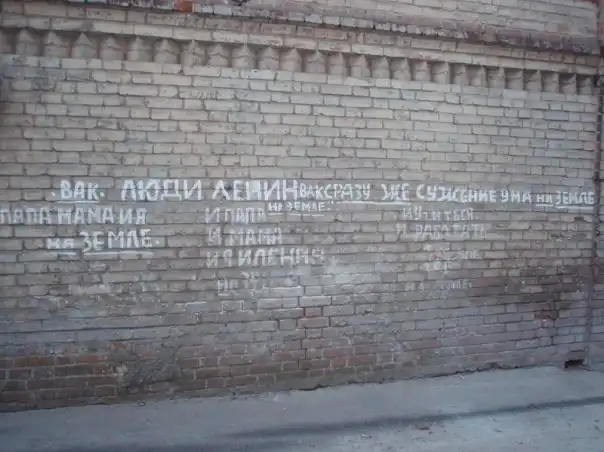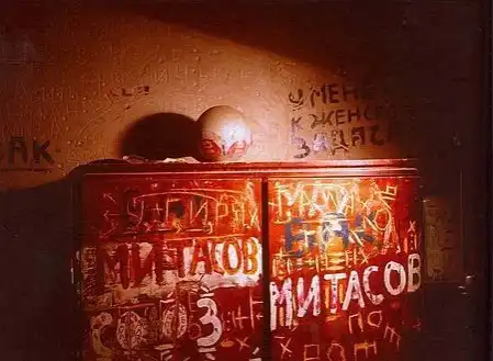 Квартира Митасова, город Харьков. Митасов родился в середине 20 в. и умер в психиатрической больнице в 1999 году. Имел высшее образование, экономист, работал директором магазина. Заболев, покрыл все поверхности своей квартиры надписями,после его смерти в квартире сделали евроремонт,но до сих пор в районе можно обнаружить его надписи на стенах домов...