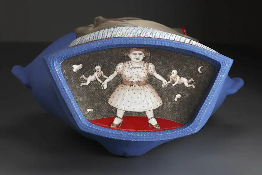 Работы Сергея Исупова всегда многогранны. В его скульптуре органично существует графика, а животное начало причудливым образом переплетается с человеческим. В результате этого синтеза появляются существа, которым самое место во сне.