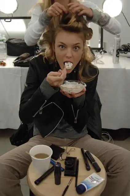 Несмотря на то, что модели водят дружбу с дизайнерами, влезают в 24 размер джинсов и по тысяче раз за год бывают в Париже-Нью-Йорке-Милане, между работой они коротают время вполне обыкновенно: курят, спят, едят (и не всегда овощи) и трещат по телефону.
